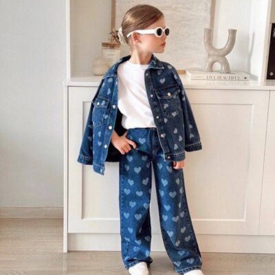 Kız Çocuk Kalp Desenli Kurdaleli Elbise