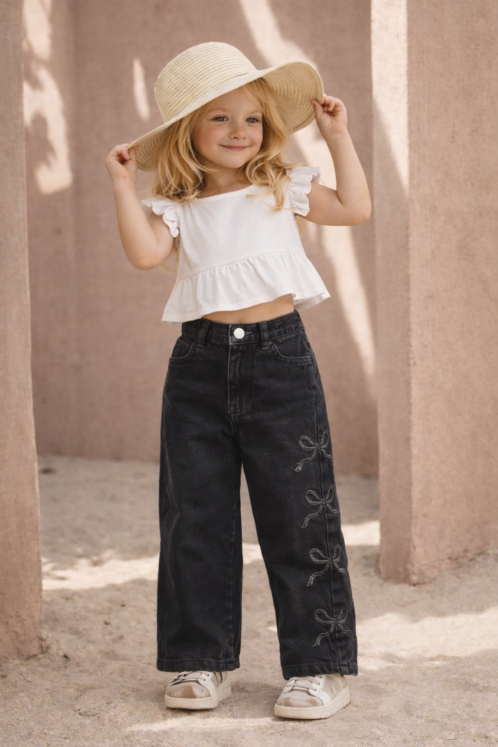 Kız Çocuk Bol Paça Yırtmaçlı Pantolon