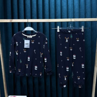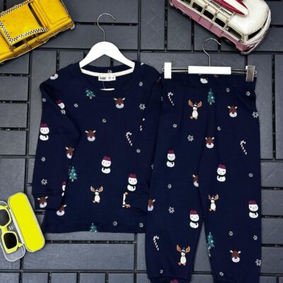 Unisex Çocuk Yılbaşı Desenli Pijama Takımı