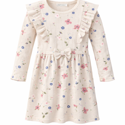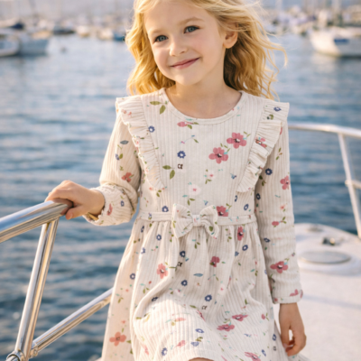 Kız Çocuk Çiçek Desenli Kurdaleli Elbise